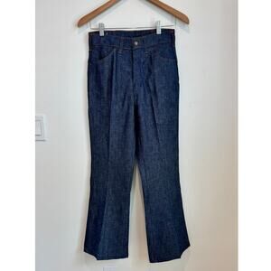 Tagged Size 14 / W27, these could also fit an adult female size 25-26 with original Lot Number 29422/6 and RN 43602 (an FTC identifier, not a manufacturing year). These jeans feature a true retro silhouette with a flare bottom, back yoke, no back pockets, and a distinctive front snap pocket — iconic details that reflect the era’s denim craftsmanship.