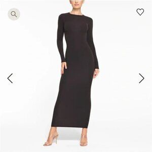 NWT SKIMS Fits Everybody Bodycon Maxi Dress Crewneck Long Sleeve Onyx Black S