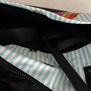 NWOT-Cute duffle bag featuring Hello Kitty and friends. Blue and white stripes with black accents. Has strap on back to go over your suitcase handle. Fits great on your suitcase to move at ease through the airport. Also comes with shoulder strap.