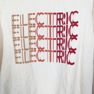 Current/Elliott Electric Crewneck Graphic Sweatshirt. Pullover, round neck, long sleeve and cream/red color, tapioca ground white, athletic fit with raglan sleeves. 100% Cotton.