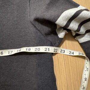 Elegant charcoal sweater with signature stripe detail. Ideal for layering.