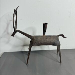 Brutalist Metal Welded Deer Sculpture Candle Holder