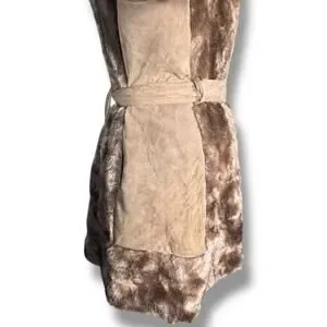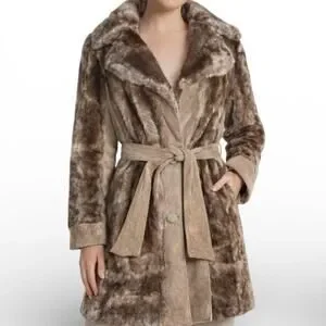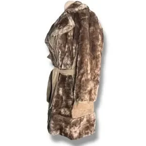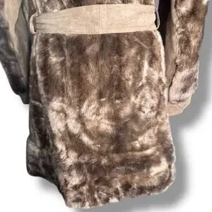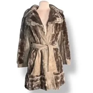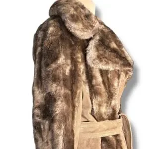 Vintage 70s Tocci England Faux Fur Suede Leather Belted Coat Burgundy Lined