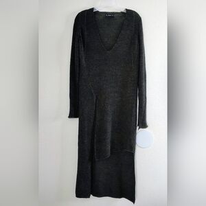 ZARA Knit Midi Dress Size M Charcoal Gray V-Neck Long Sleeve Asymmetrical