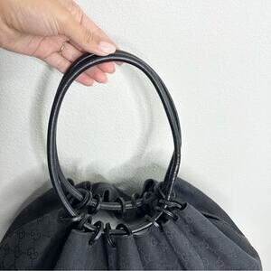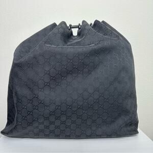 GUCCI GG Monogram Black Canvas Drawstring Large Bucket Bag Tote