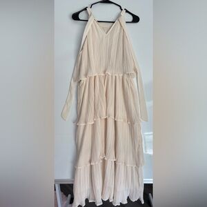 This chic cream formal dress is perfect for elegant occasions. Its flowing design offers both comfort and sophistication. New with tags! Never worn.