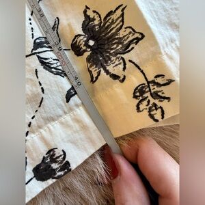 Elegant cream dress with a charming floral print, button down front, soft cotton/ linen feel, and a tie waist . Perfect for any occasion.