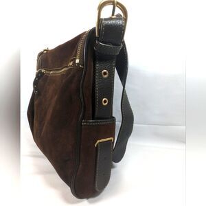 Maxx New York Signature Brown Suede Leather Shoulder Bag And Matching Wristlet