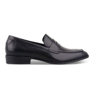 These Alfani black faux leather penny loafers combine classic styling with modern comfort, featuring a memory foam insole. Perfect for versatile day-to-night wear, they offer both style and practicality. • Material: Faux leather • Color: Black • Insole: Memory foam • Style: Penny loafers • Condition: New • Fit: True to size • Care: Wipe clean