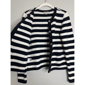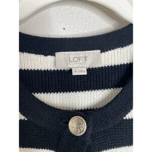 LOFT Black White Striped Cardigan Parisian Chic Minimalist Size M