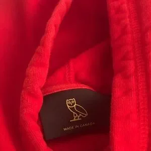 OVO Red Hoodie with Owl and Maple Leaf Design