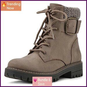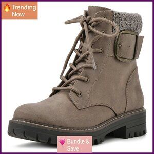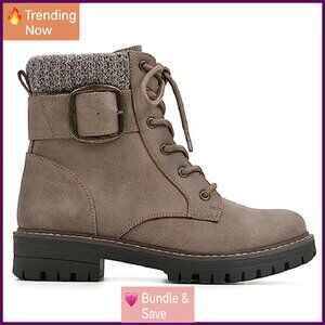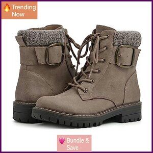 Women's Block Heel Ankle Boots with Lace-Up & Zipper Closure