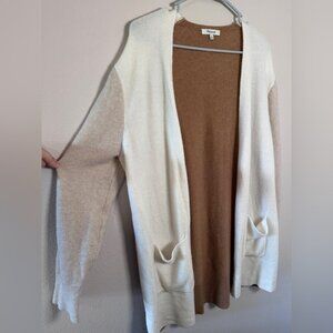 Madewell womens size medium Tan Cream Colorblock Open Front Cardigan Sweater