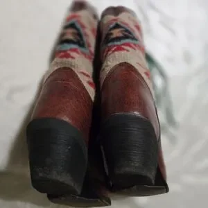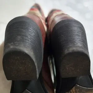 Featuring a rich brown leather base and vibrant red and green accents, these boots are perfect for making a statement. Ideal for any occasion, they combine comfort with a bold design. Purchased on Poshmark and never wore. These are in EXCELLENT condition. Reasonable offers considered!