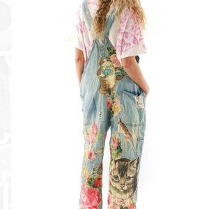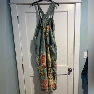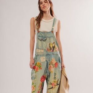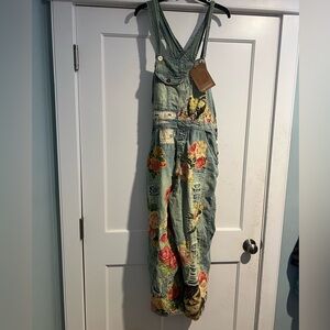 Magnolia Pearl/Free People Floral Appliqué Denim Overalls - Vintage - OS - NWT