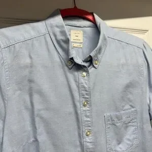GAP Shrunken Boyfriend Button-Down Shirt in Light Blue Wash, Size: M