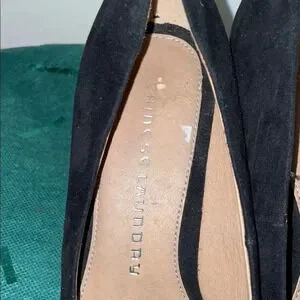 These elegant high-heeled shoes by Chinese Laundry feature a deep black color and a sleek, simple design. With a high, thick heel and a rounded toe, they embody a classic silhouette perfect for any occasion.