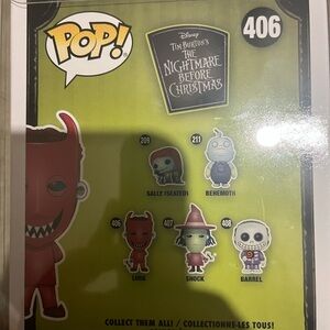 Collectible Disney Pop! figure from The Nightmare Before Christmas. Features vibrant red and green colors. Ideal for fans and collectors.