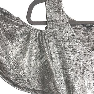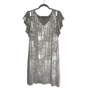 MSK Metallic Cold Shoulder Flutter Sleeve Dress XL Silver