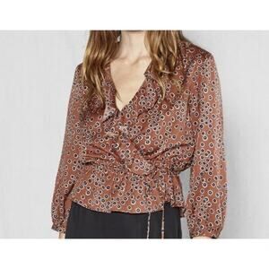 NWT Outerknown Rhiannon Ruffle Trim Tie Wrap Blouse Top Brown Women's Size XS