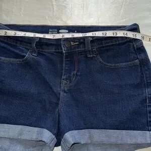 Old Navy Mid Rise Cuffed Dark Denim Shorts 3” Inseam Semi Fitted Stretch Size 6