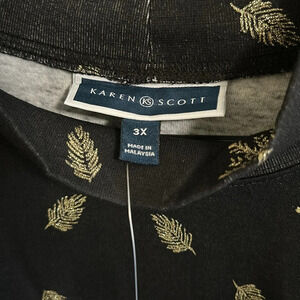 Karen Scott L/S NWT Black w/ Gold Glitter Leaves & Snowflakes❄️ all over Size: 3X