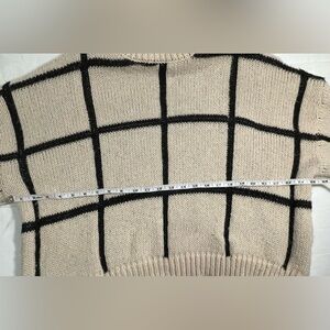 This one's for cuddling up on the couch with a cup of hot cocoa and a good book. Seriously super soft, warm, and cozy chunky knit sweater featuring a ribbed mock neck, drop shoulders with voluminous balloon sleeves finished in a ribbed cuff. Ivory colorway with black check pattern. Slouchy fit with a slightly cropped length. Cotton/viscose blend. Measurements in photos.