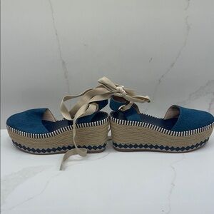 Tory Burch Blue Espadrille Wedge Sandals