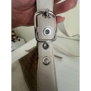 Coach Signature Monogram Canvas Leather Trim Shoulder Bag Purse Brown White