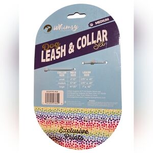 Vibrant rainbow dog leash and collar set by Whimsy. Perfect for medium-sized dogs.