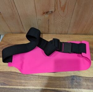 Chic and vibrant pink wristlet clutch by , featuring elegant gold accents. Perfect for adding a stylish touch to any ensemble.
