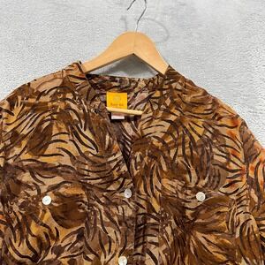 Ruby Rd Blouse Womens 18W Sheer Button Up Boho Hippie Leopard 90s