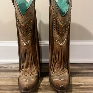 Light Brown/Tan Fringe Cowboy Boots -embroidered and with crystals