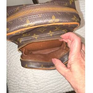 Louis Vuitton Monogram Crossbody Amazone. Preloved. Original crossbody strap has been fixed using LV Vachetta for new tabs. Zipper pulls good condition. Exterior clean. Some peeling inside but it has been brushed and vacuumed. See pictures for more details.