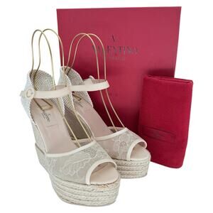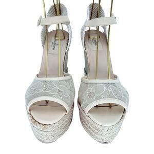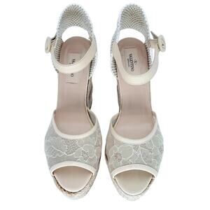 VALENTINO GARAVANI Mesh Lace Leather Espadrille Wedge EU 39 US 9 Platform Sandal