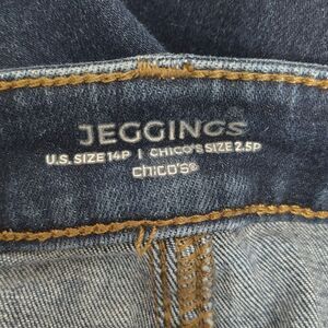 CHICO'S High Rise Jeggings 14 Petite Short Dark Wash Stretch Jeans 2.5P Chico's Tag Size. 36" waist at rise, 11" rise, 26" inseam. Compare to $100 new!