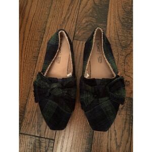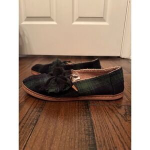 TOMS Women's Plaid Lined Slippers Flats Bow Detail Green Black Size 9.5