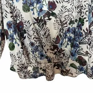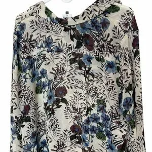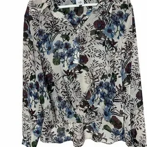 CAbi Blue and Purple Floral Shirt Size XL