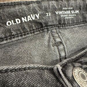 Old Navy preloved barely worn black grayish vintage inspired straight leg jeans. Size 22. Excellent used condition, minimal signs of wear. Recently lost weight so they no longer fit but I'd love to find them a new home.