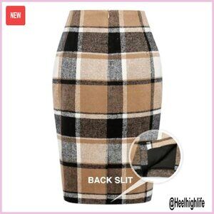 Brand new and in flawless condition — this elegant plaid pencil skirt offers a polished, sophisticated look perfect for the office, business casual settings, or stylish fall and winter outfits. The woolen fabric is classic and warm, with a flattering slim fit and a chic back slit design.