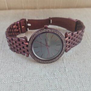 Michael Kors Women Wristwatch Burgundy Tone MK3554 Quartz Watch Crystal Accent