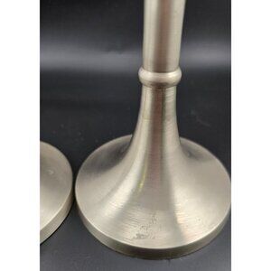 Set Of 2 Brushed Silver Metal Candle Holders Made In India, 9" and 12" Tall