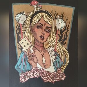 🌟 Alice In Wonderland V-Neck Women’s Top – Whimsical & Playful | Size L