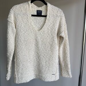 Abercrombie & Fitch Cream Boucle V-Neck Sweater Size Small