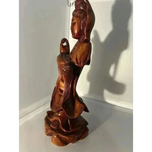 This beautiful figurine is a stunning piece of Chinese artistry. Crafted from boxwood, the figure is hand-carved with intricate details, making it a true treasure for collectors. The Kwan Yin theme and red color add to its charm, and it is sure to be a standout piece in any collection. Its origins can be traced back to China, where it was created using traditional techniques. This figurine is perfect for those who appreciate Asian art and culture, and it would make a great addition to any collection.