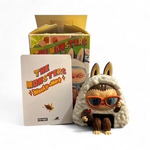 This rare “Onigiri” figure is full of charm — Labubu is dressed as a rice ball, rocking orange sunglasses and holding a little bottle of sauce. Perfect for any Pop Mart or Kasing Lung collector!