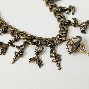 Vintage Charm Bracelet Ballet Ballerina Gold Tone Chainlink Dance Unbranded