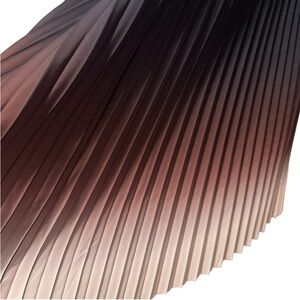 Gorgeous micro-pleated ombré midi skirt featuring a stunning gradient from deep black to soft blush pink. The ultra-fine pleats create beautiful movement with every step, while the flowy satin-like fabric catches the light for an elegant sheen.