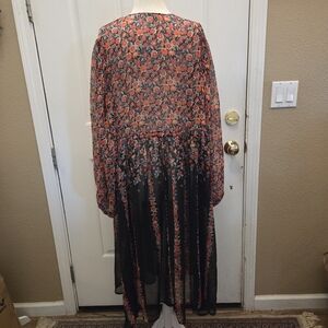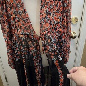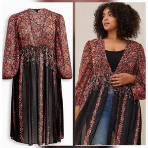 Torrid Lurex Chiffon Tie Front Maxi Floral Top Top Duster Kimono 2 2X Festival