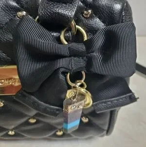 Betsey Johnson Mini Satchel Purse Be-Mine Heart Stud Crossbody Bag Quilted Black